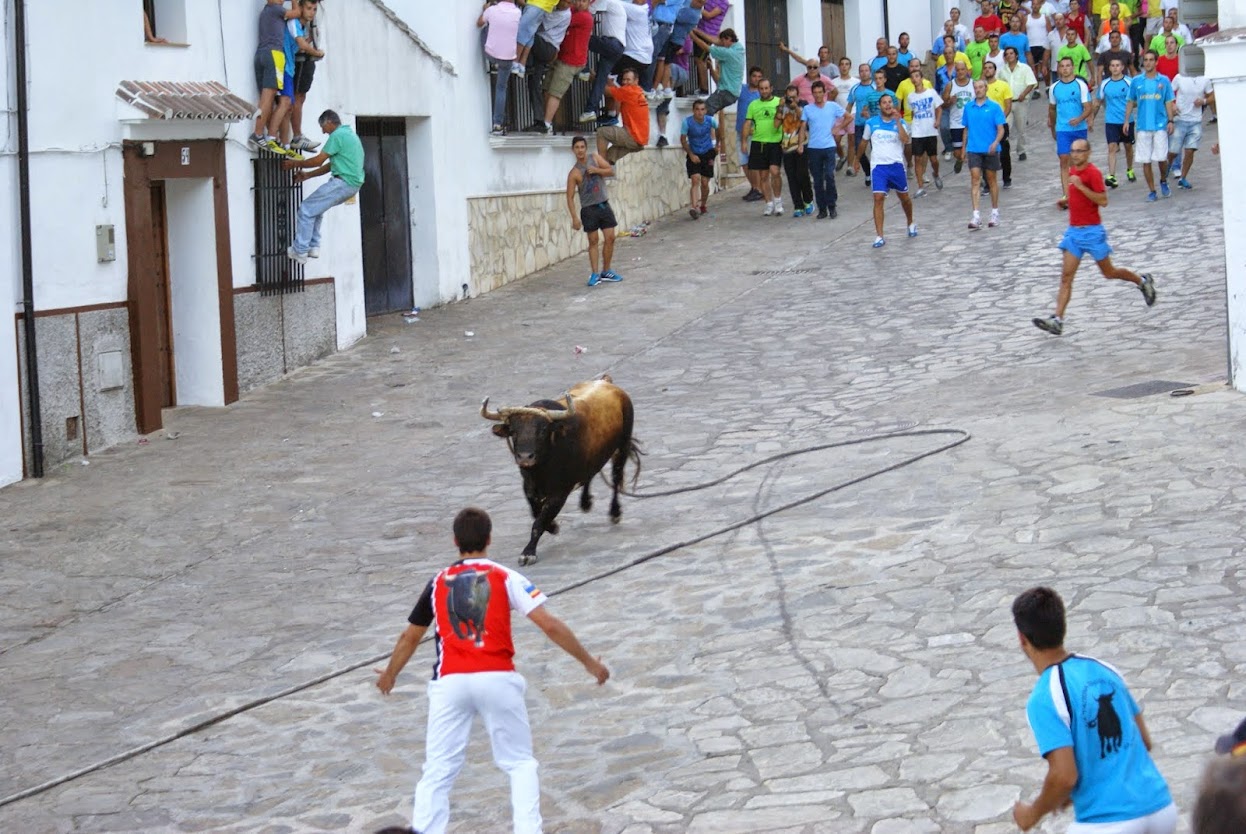 Gdy zawitaliśmy do miasteczka w piątkowy wieczór i zobaczyliśmy plakaty z imionami byków, które miały wystąpić w tej edycji "Toro de Cuerda" myśleliśmy, że ma odbyć się jakiś targ zwierząt. Krótka przejażdżka, spacer i położyliśmy się spać. Ale zaraz po tym nasz odpoczynek został zakłócony przez kakofonię dźwięków dochodzącej z imprezy odbywającej się w miasteczku. "To pewnie tylko piątkowa impreza" - myśleliśmy. Skończyli koło 4 rano, a my zgodnie z planem o 8 już byliśmy na przedśniadaniowym treningu na podjeździe między Ubrique a Benaocaz.